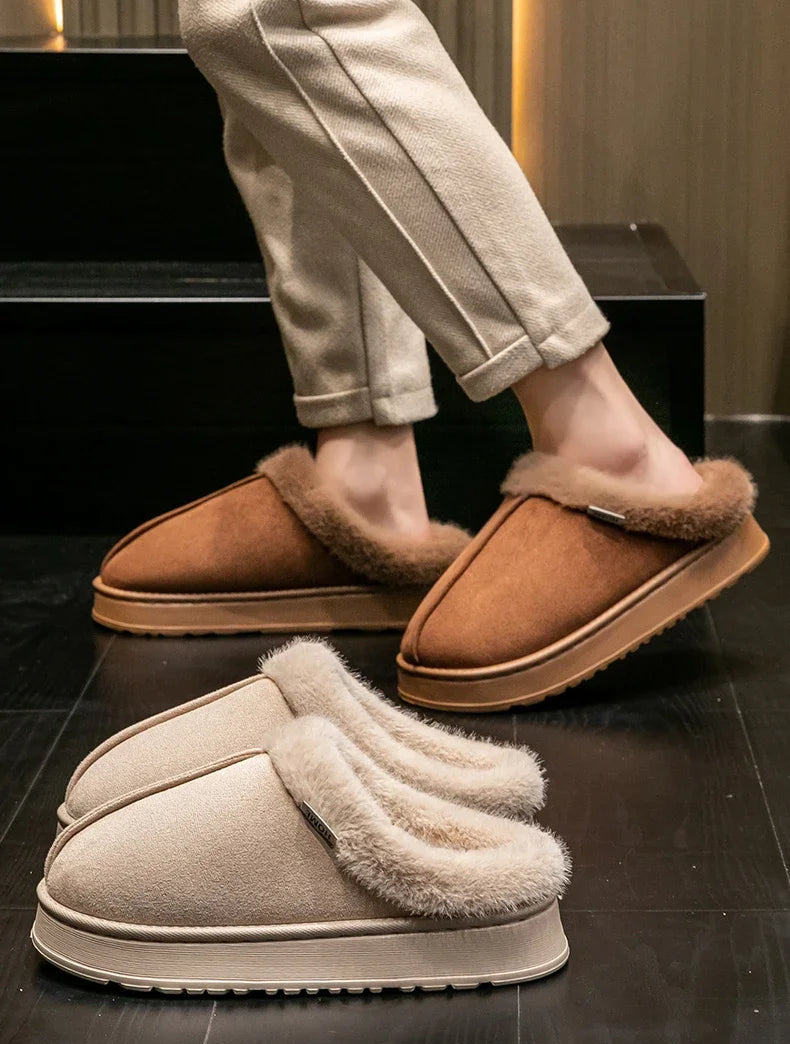 Magnifiques chaussons d’automne-hiver avec doublure en peluche douce, matière supérieure en suédine, semelle épaisse antidérapante, sécurité et confort durable. Livraison offerte !