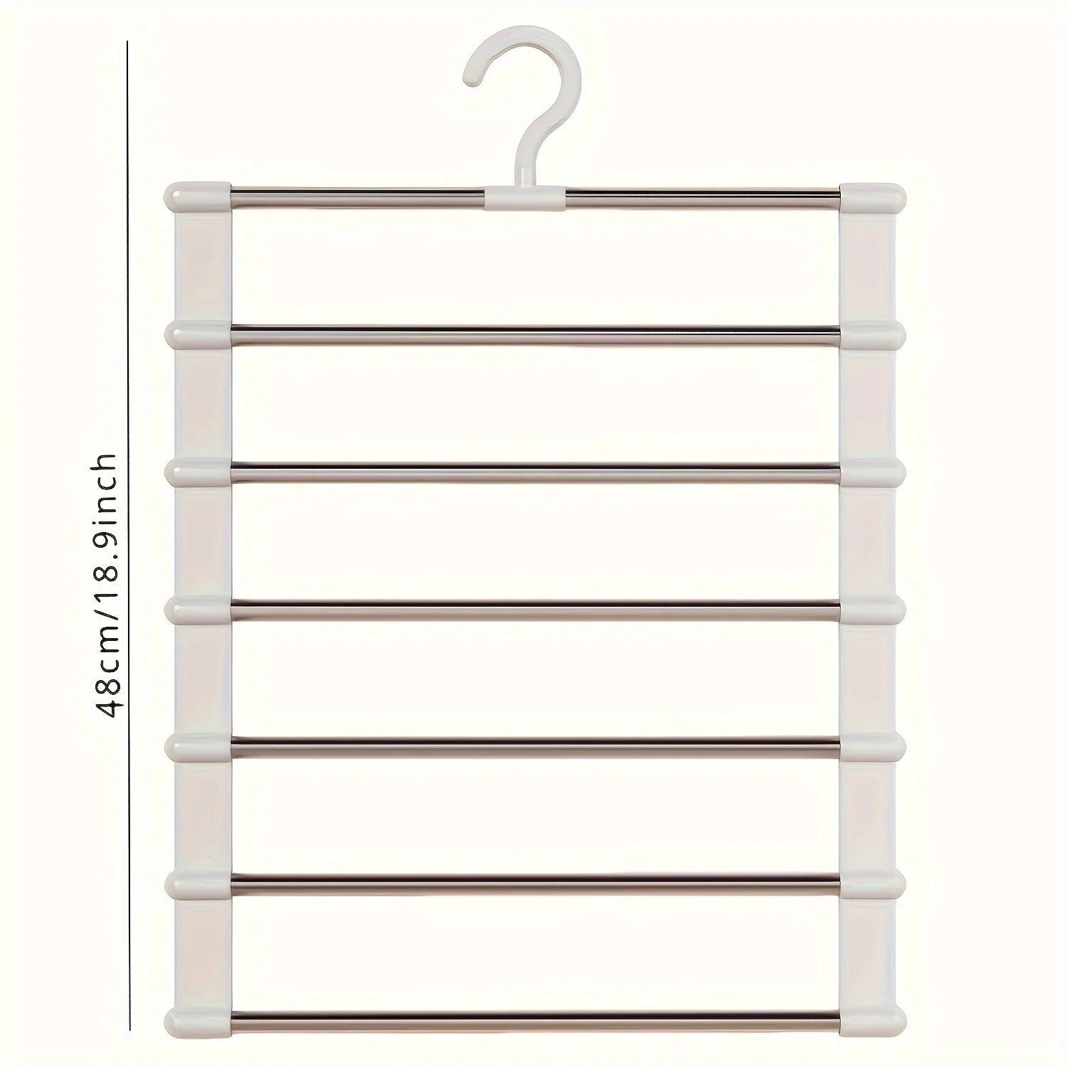 Ce cintre multifonction est conçu en acier inoxydable solide et durable. Avec ses 7 barres horizontales, il permet de suspendre jusqu’à 6 pantalons, jeans, leggings ou autres vêtements sans les froisser.