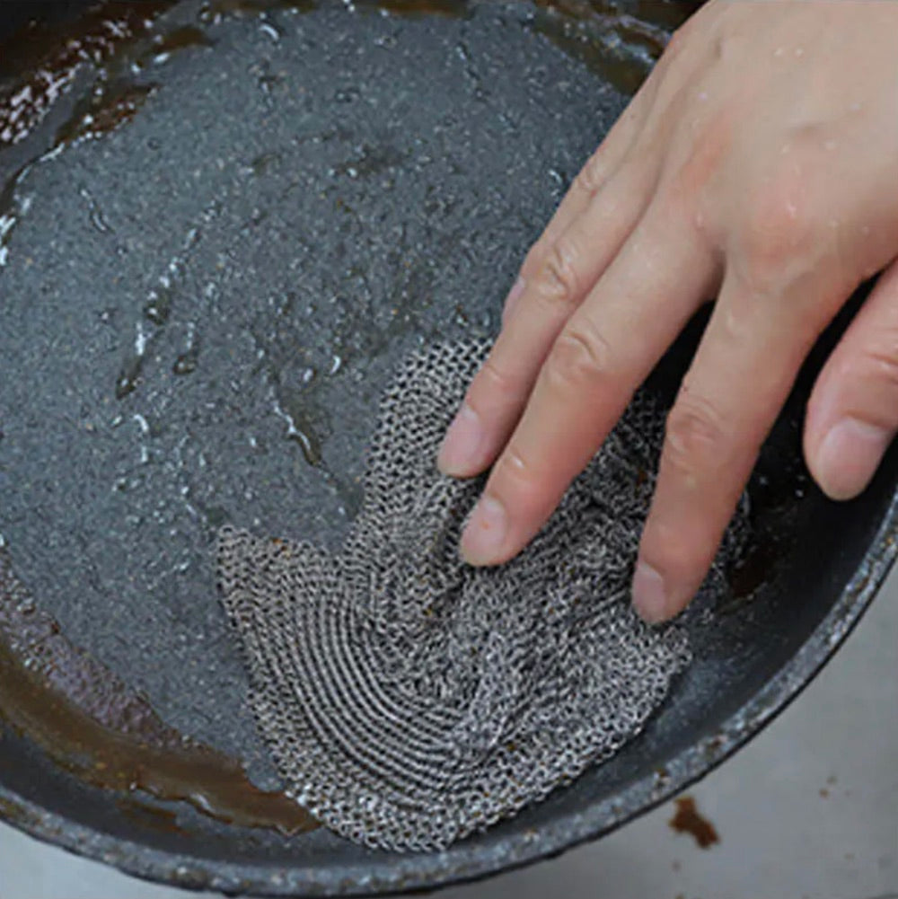 Grille métallique en inox, maille fine ultra-résistante, nettoyage puissant sans rayures, hygiénique et sans odeur, durable et antirouille pour poêles en fonte, casseroles, grills, planchas, moules et ustensiles de cuisine. Livraison offerte !