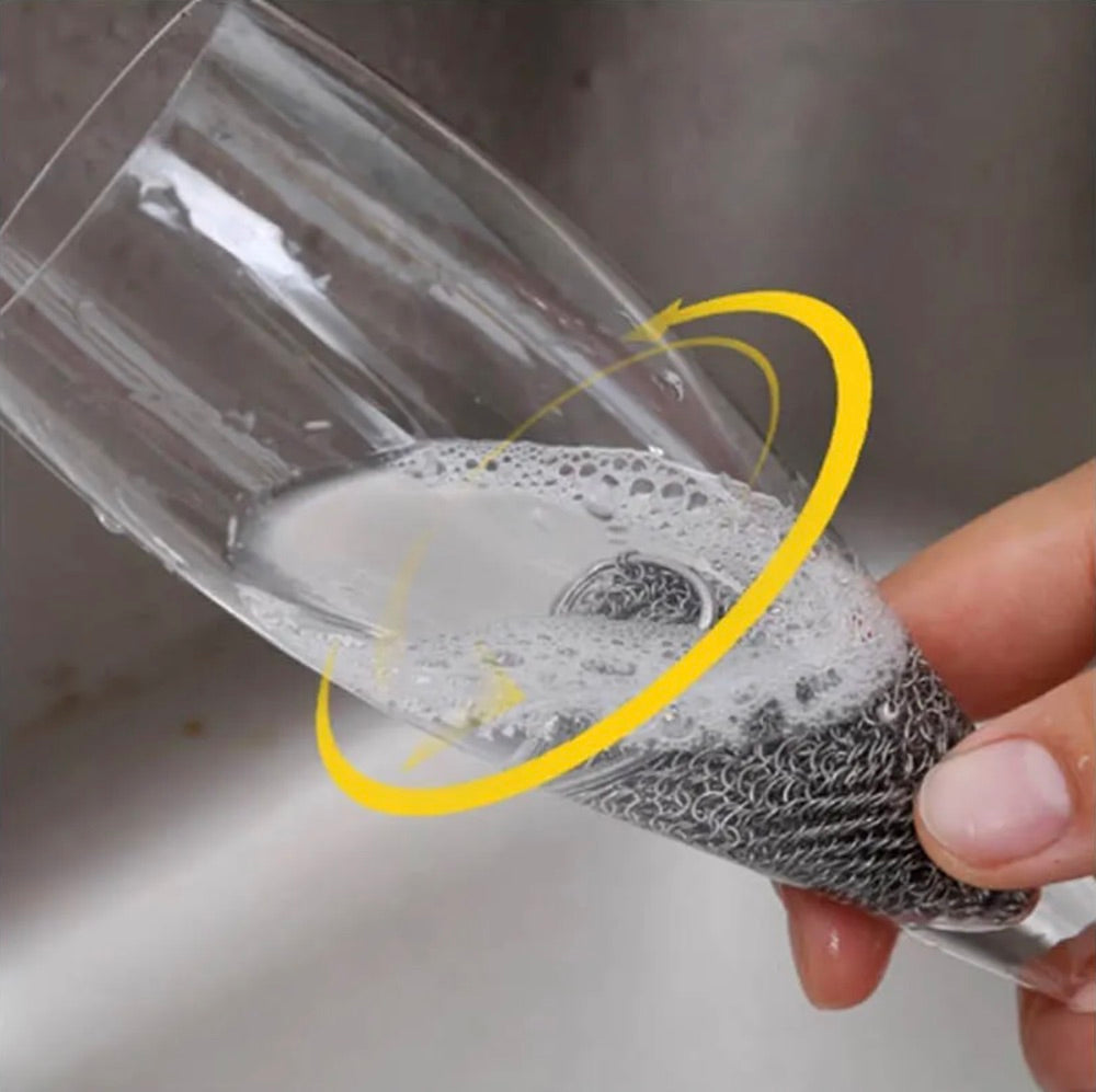 Sa maille fine de deuxième génération — avec des anneaux plus petits et des soudures réalisées avec précision — assure une capacité de nettoyage renforcée tout en restant douce au toucher. Elle convient parfaitement aux poêles en fonte, casseroles en acier inoxydable, cocottes émaillées, grills, planchas, fours, plaques de cuisson, moules à tartes, verrerie et bien plus encore.