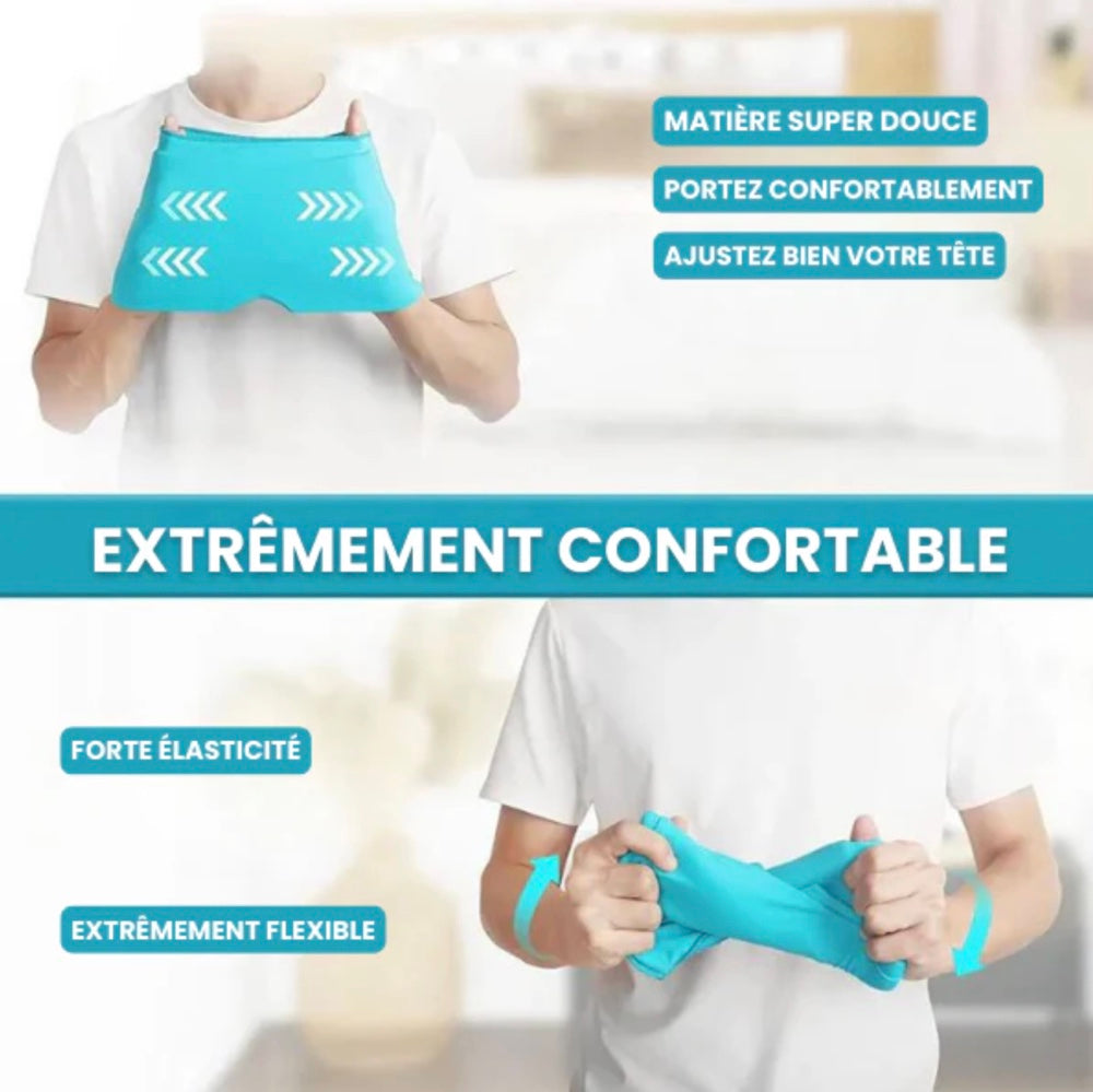 Flexible et confortable, même congelé : conçu en tissu extensible doux et sans odeur, il reste souple après plusieurs heures au congélateur et s’ajuste parfaitement à toutes les formes de tête, sans serrer.