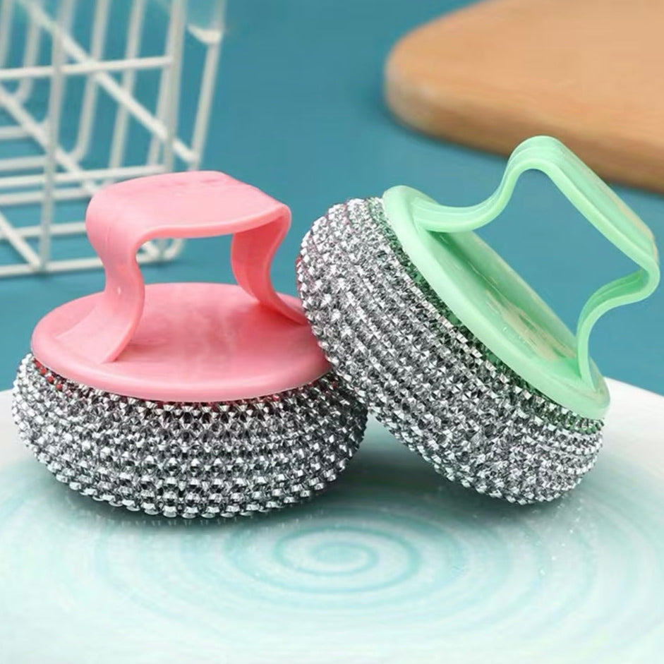 Lot de 2 brosses à récurer avec poignée, en fil d’acier fin, nettoyage puissant et sans effort pour casseroles, poêles, grilles et ustensiles de cuisine, prises ergonomiques, efficacité durable pour un ménage impeccable. Livraison offerte!