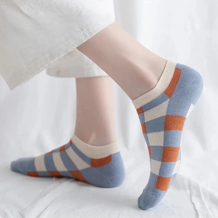 Superbes chaussettes pour femme, à rayures et à carreaux, confortables, douces, respirantes et extensibles, taille unique. Idéales pour le printemps et l'été ! Lot de 6. La livraison prioritaire est offerte !